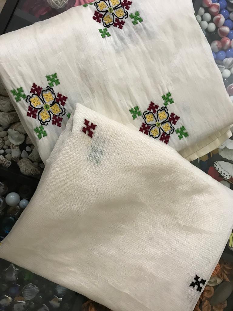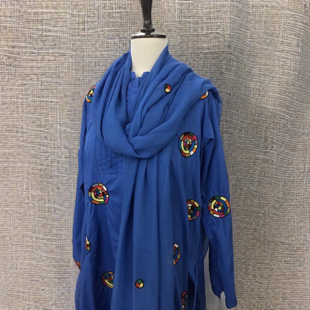 Ready to wear Embroidered Cotton (imported) Shirt with Embroidered Chiffon Dupatta. (A-line stitched)