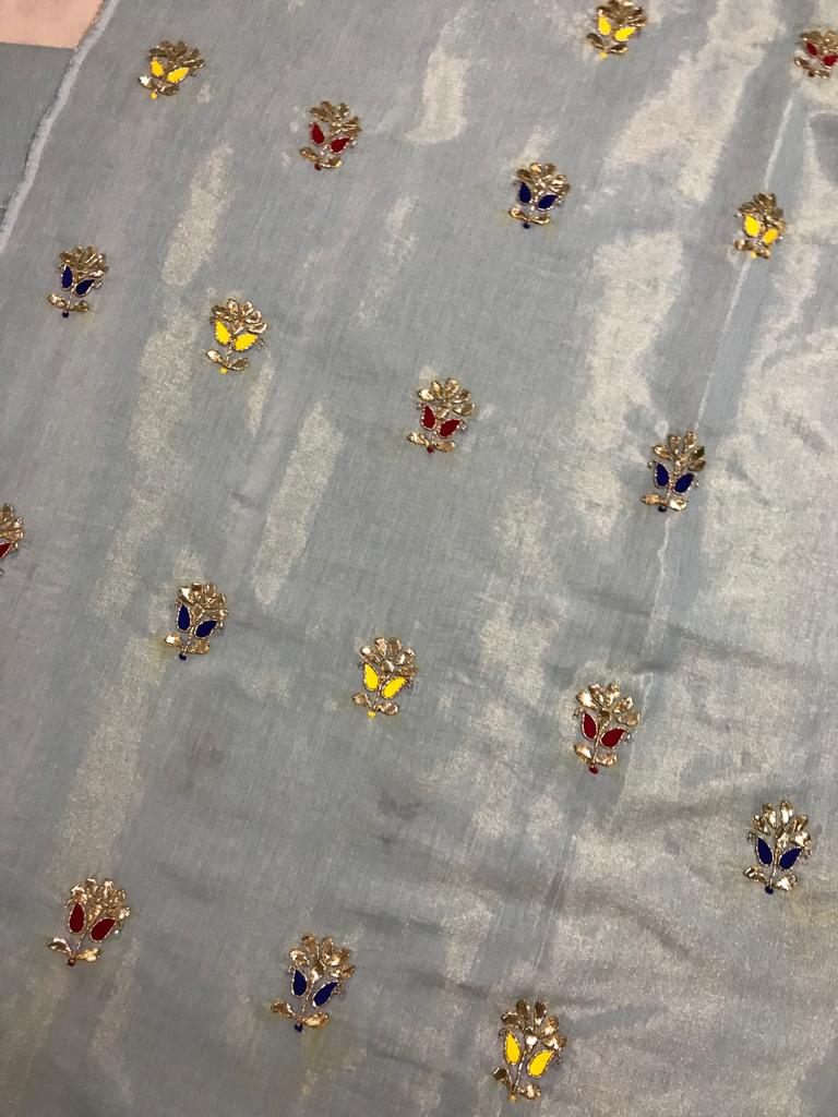 Gotta Embroidered Maysuri Lawn Unstitched Shirt with Dyed Korean Raw Silk Trousers.